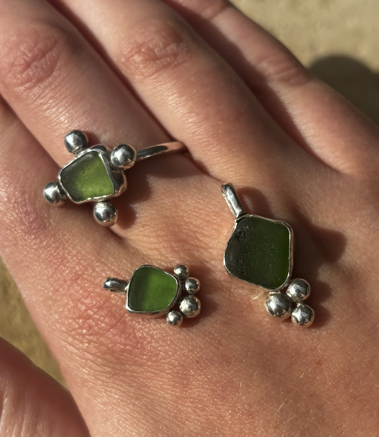 I began silversmithing as a high school project and have carried that interest with me ever since, recently returning to the practice with a renewed focus. Living by the coast, I often draw from my surroundings, sourcing sea glass from my local back beach and allowing place and material to guide each piece.